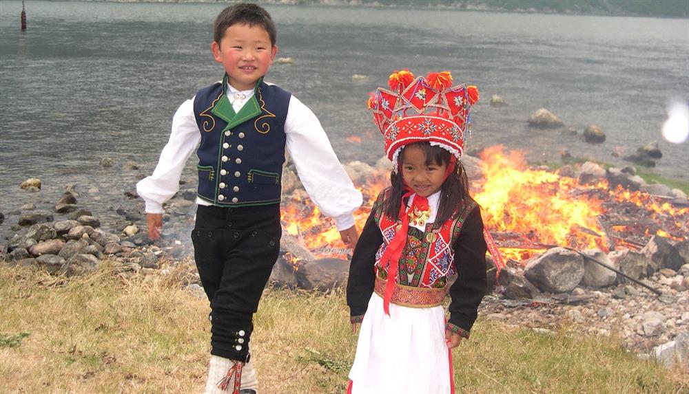 Jonsokbryllaup med barnetog frå Gamle Kyrkja til Ostangen, med jonsokbål og grilling utover kvelden.