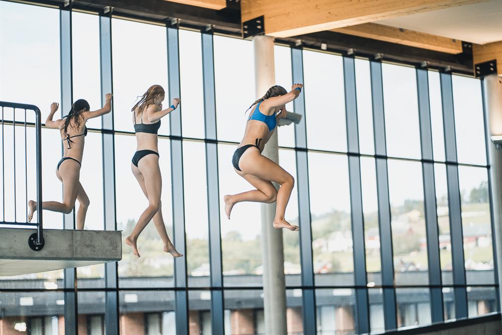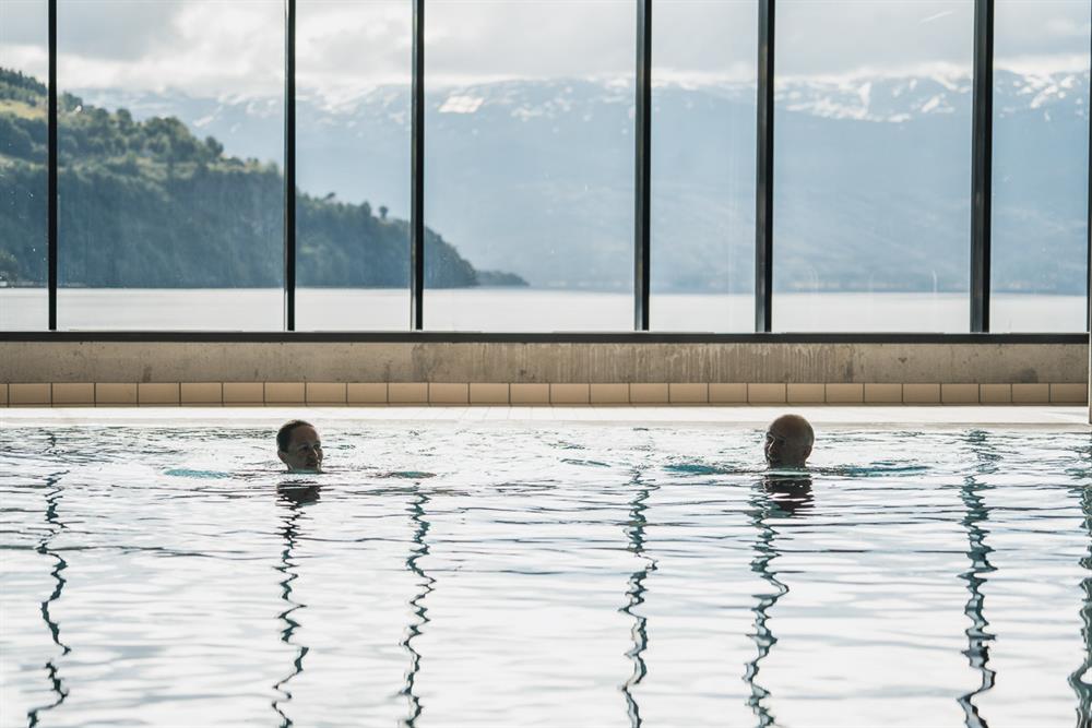 Das neue Schwimmbad Hardangerbadet liegt am Fjord im Zentrum von Øystese. Das prestigevolle Projekt, das im Dezember 2019 fertig gestellt wurde, beinhaltet eine Bade- und Schwimmanlage, Ärztezentrum, Trainingscenter sowie das landbasierte Besuchszentrum der Lachsaufzuchtanlage Hardanger Akvasenter.
