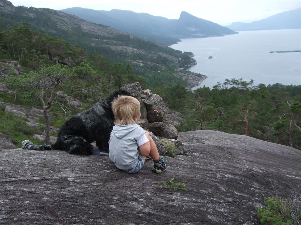 Zum größten Teil führt diese Wanderung über Felsen; Achtung, sehr rutschig bei Regen und nassem Untergrund. Fantastische Fjordaussicht von unterwegs. Der letzte Teil der Wanderung führt durch ein Waldgebiet mit kleinen Seen und Mooren. Von Haugsvarden sehen nach Herand herunter.