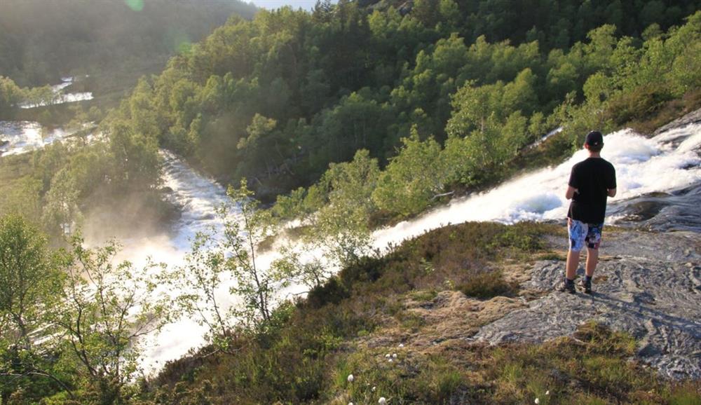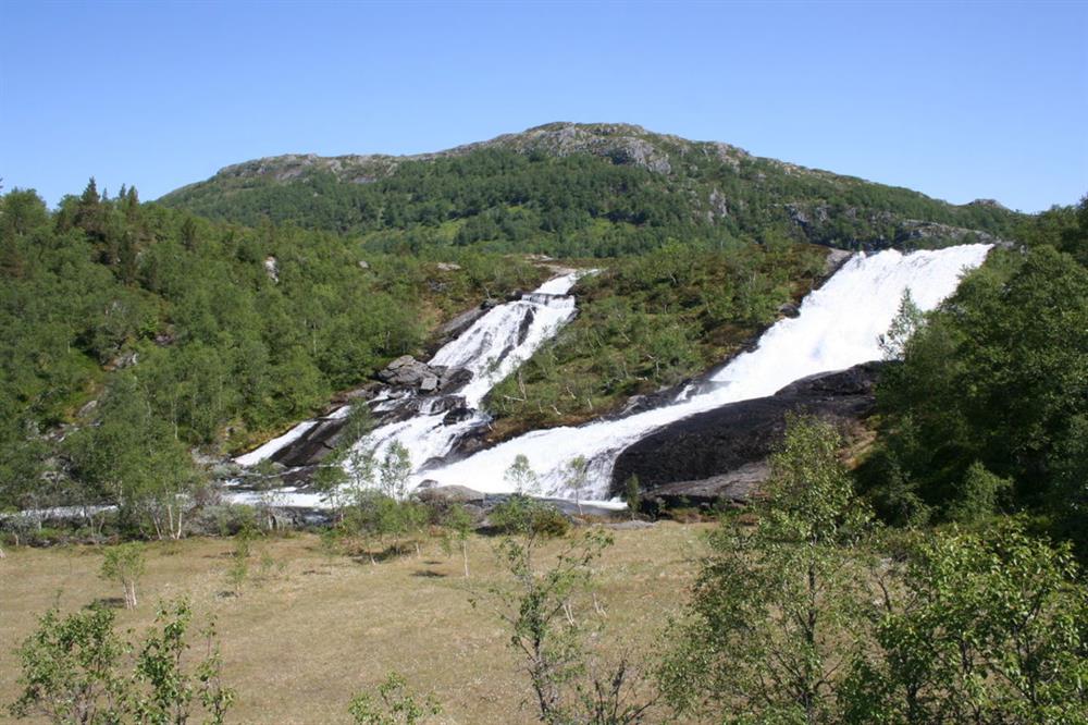 2 km nordöstlich vom Herand Kai verlassen Sie die Straße 550 und fahren auf einer Forststraße nach Osten kurz vor der Brücke bei Samland. Hier müssen Sie eine geringe Mautgebühr bezahlen. Nach 1,8 km befindet sich links ein Schild Richtung Solhaug. Fahren Sie bis zum Ende dieser Straße. Es ist Platz für ein paar Autos, bitte stellen Sie sicher, dass hier Platz für andere Autos ist.