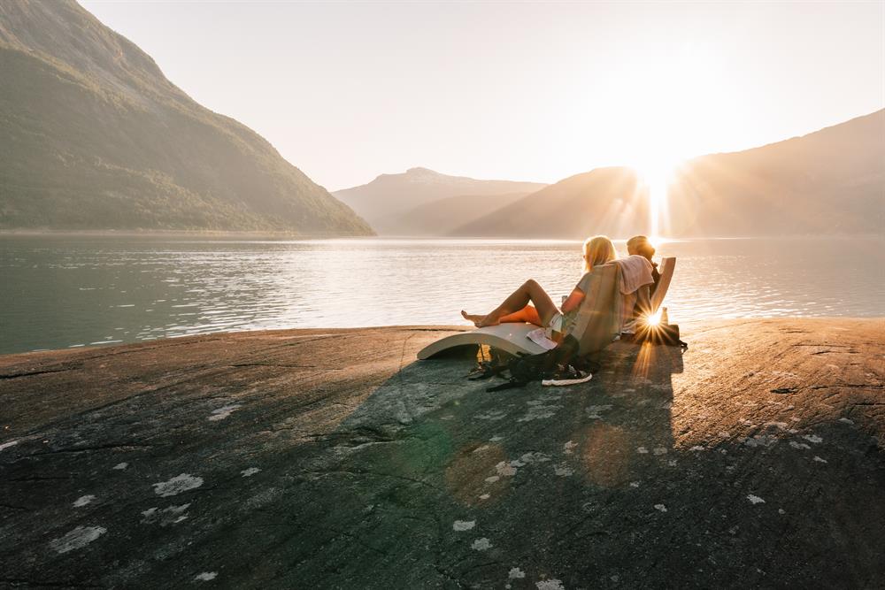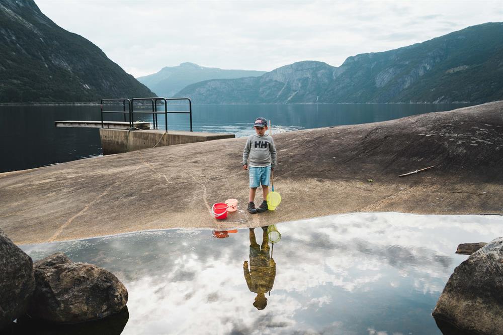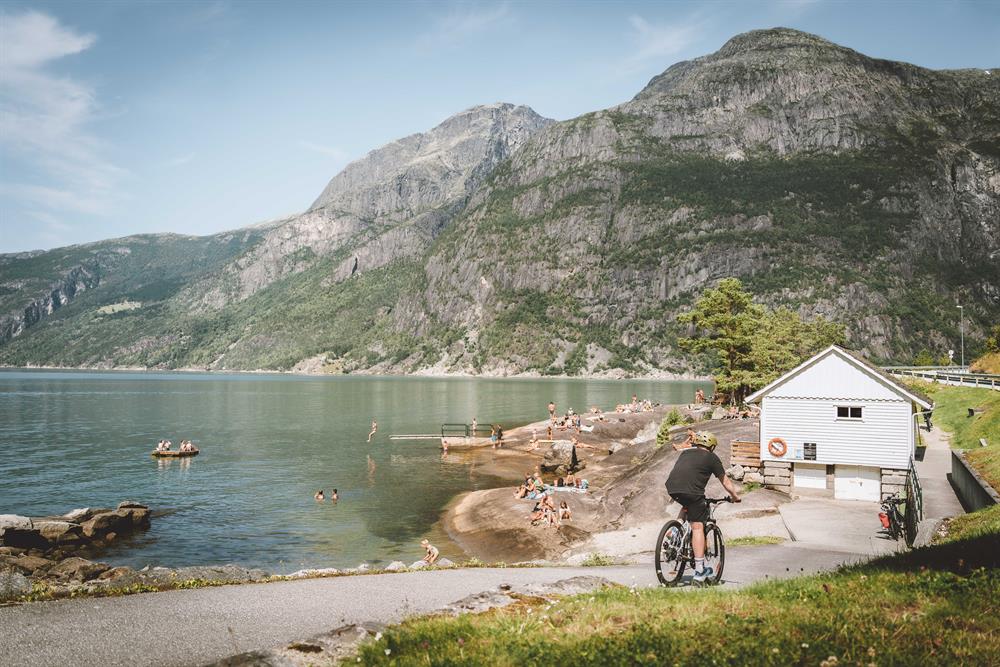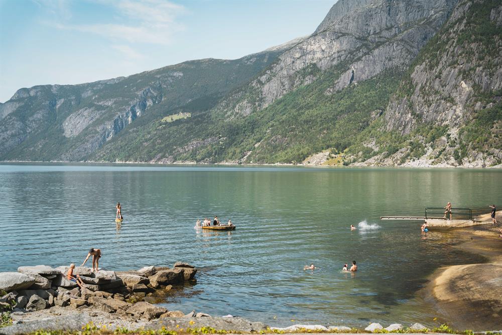 Badeplatz mit Felsen, Sprungbrett, Grill und Garderobe mit WC. 1 km vom Zentrum von Eidfjord entfernt, in Richtung Simadal.