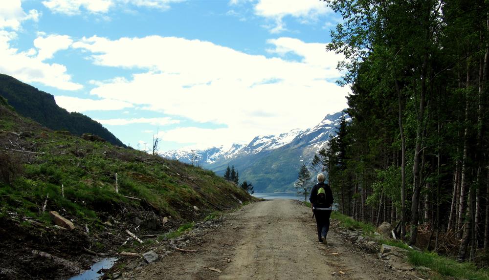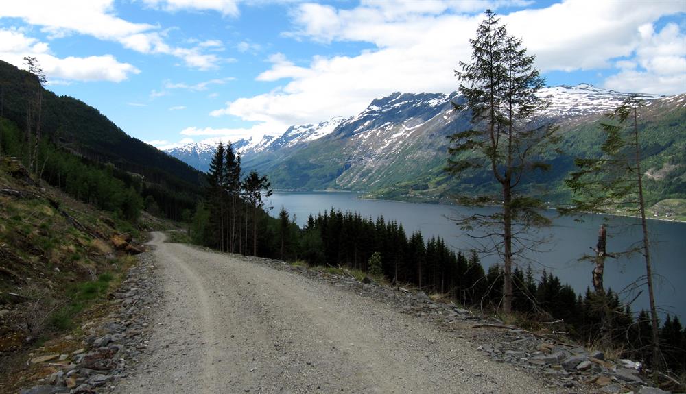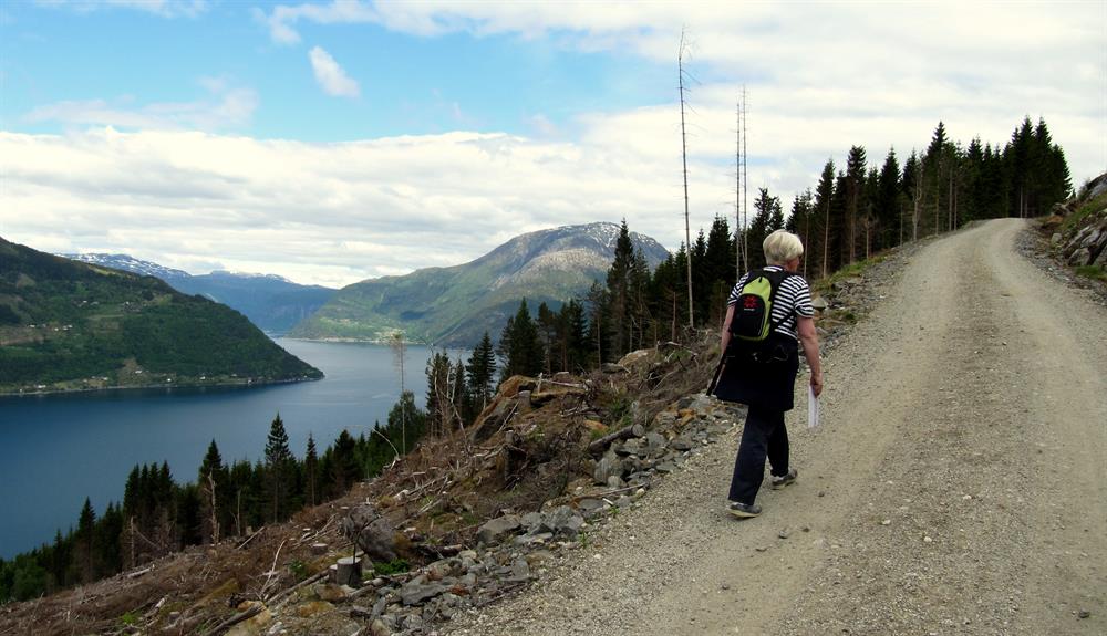 Beschreibung: Vom Parkplatz in Røte folgt man dem Schotterweg nach Heng. Ab ca. 400 m.ü.M. kommt man in einen dichten Wald und die Aussicht ist begrenzt. Dafür wird man ab ca. 600 m.ü.M. wieder mit einer herrlichen Aussicht belohnt.