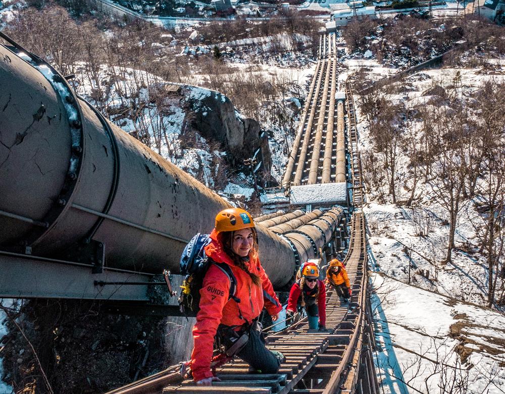 Diese geführte Klettersteigrute ist eine gute Kombination aus Adrenalin-Rush und Geschichte. Wussten Sie, dass ein Großteil des Stroms in Norwegen durch Wasserkraft generiert wird?