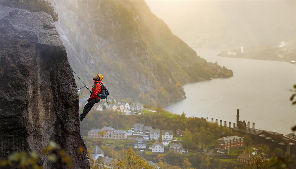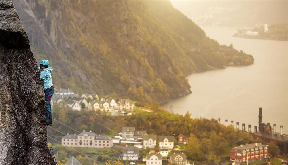 Begleiten Sie Trolltunga Active auf einem spektakulären Klettererlebnis an den Felswänden bei Tyssedal!
