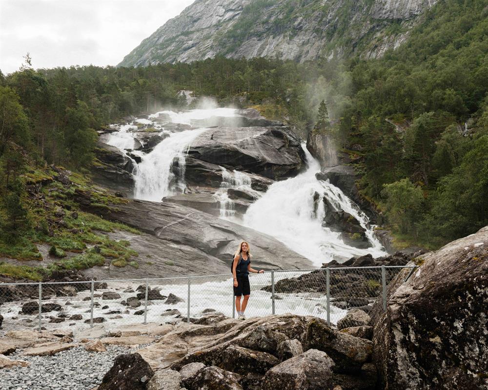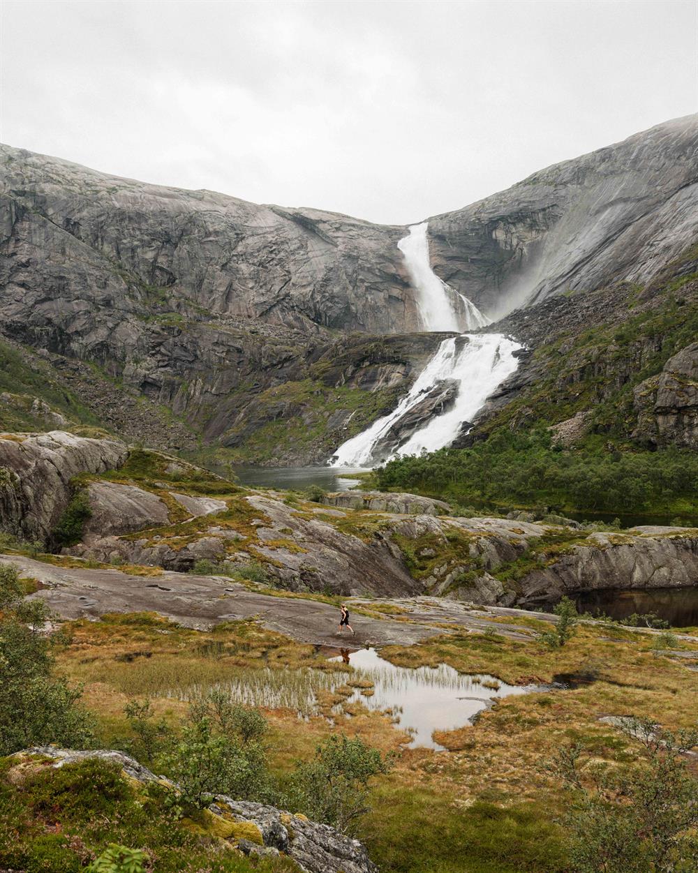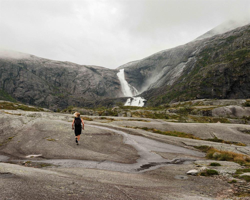 Ab dem Parkplatz folgen Sie dem Schotterweg bis hin zu dem ersten Wasserfall, Tveitafossen. Ab hier gibt es zwei Möglichkeiten: