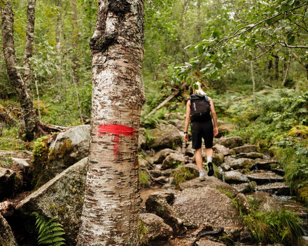 Diese Wanderung gilt schon seit langem als eine der schönsten Wanderungen Norwegens. Teilweise ist der Weg steil und bei Regen und nassem Untergrund rutschig. Gehen Sie die gesamte Wanderung, kommen Sie bis in den Hardangervidda Nationalpark hinein.