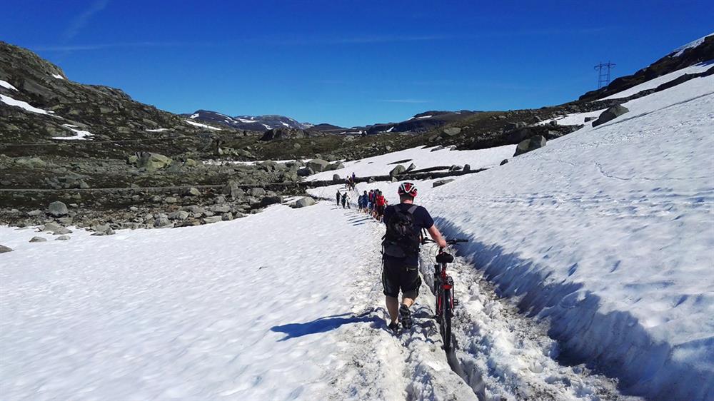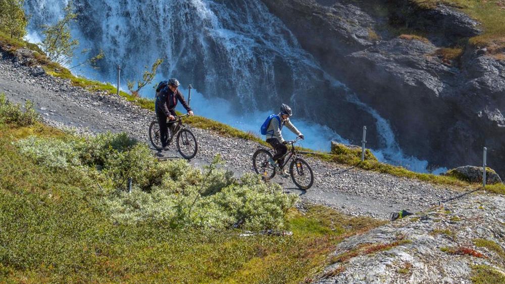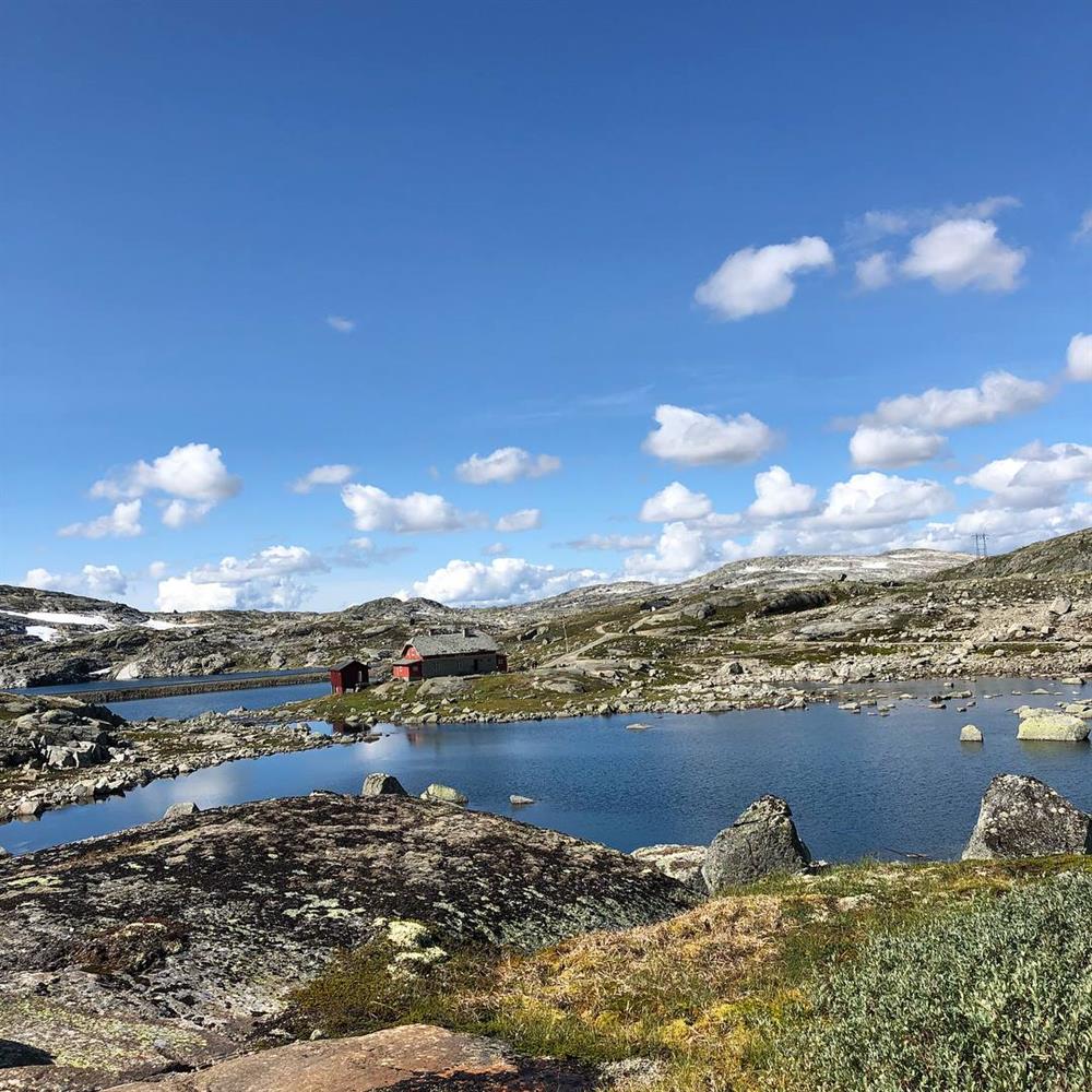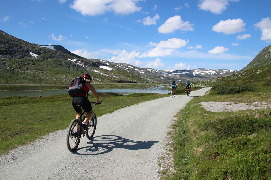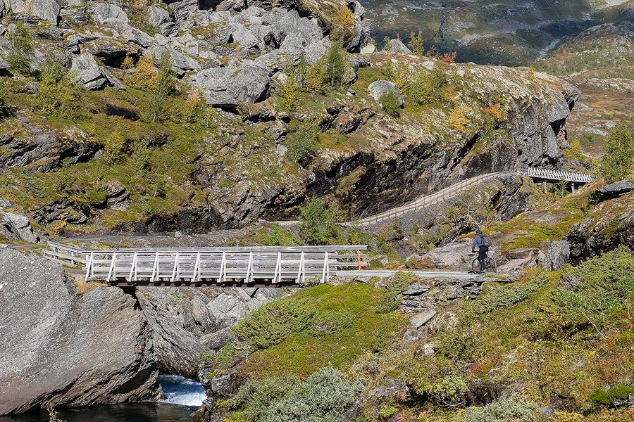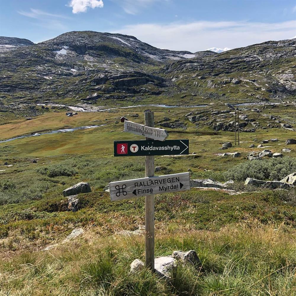 Hardangervidda. Fuß- und Fahrradweg. Haugastøl- Finse- Hallingskeid- Myrdal- Flåm. Gebaut 1895-1902. Der Weg, die Eisenbahnlinie, die Brücken, die Baracken und die Bewachungshütten sind sichtbare Erinnerungen an Bau und Betrieb der höchstliegenden Eisenbahn Nord-Europas. Einschl. der Strecke Upsete-Mjølfjel ist der Weg 95 km lang.