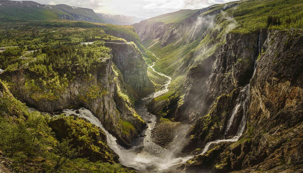 Bussen fortset deretter opp dei bratte hårnålsvingane gjennom det dramatiske landskapet i Måbødalen. Når du kjem til Vøringsfossen, har du 45 minutt til å utforske dei dramatiske omgjevelsane og ta bilder av fossen.