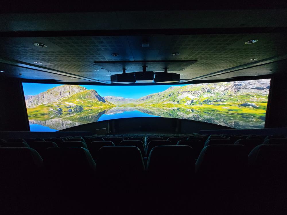 Eit av høgdepunkta er den moderne kinosal som viser film over 225 graders panoramaskjerm. Med ny filmteknologi og komponert musikk kan vi tilby ein av Europas største panoramaskjermar, 21 meter lang og 4 meter høg i eit sømløst bilde med 225° synsvinkel. Tilsvarande film med 12 K kvalitet er tidlegare aldri produsert i Norge. Panoramafilmen viser ei reise gjennom fjordar, fjell og fossar på ein spektakulær og spennande måte!