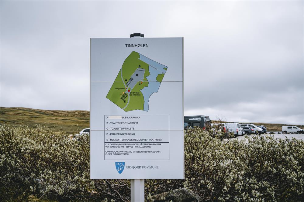 Køyr Tinnhølvegen og parker på parkeringsplassen ved Tinnhølen. Følg merka sti til Stigstuv ca 1,5 timar. Følg stien vidare til Bjoreidalshytta (stengt) ca 2,5 timar, og deretter stien og Tinnhølvegen tilbake til Tinnhølen ca 2 timar.