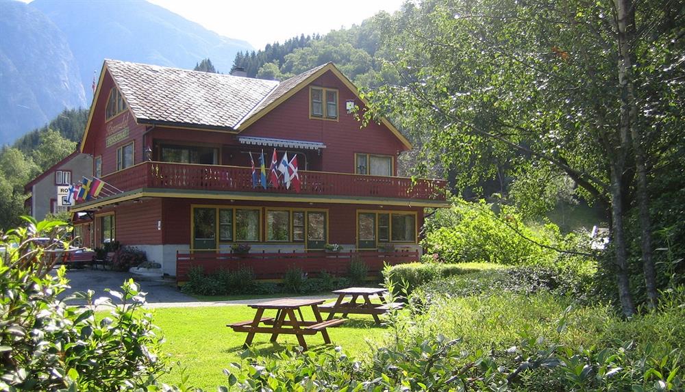 Velkomen til pensjonatet som ligger langs Rv 7 og elva Eio.