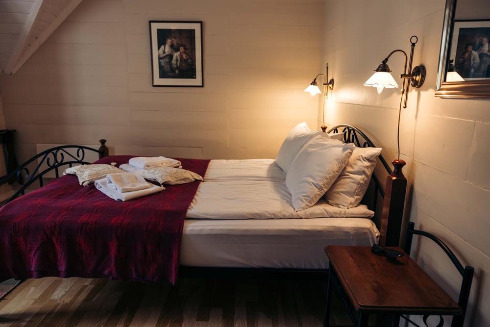 Vi tilbyr 8 koselige rom i pensjonatet, 4 hjemmekoselig hytter som ligger langs elvebredden, kafé med peis, velsmakende, mettende måltider og vennlig personale.