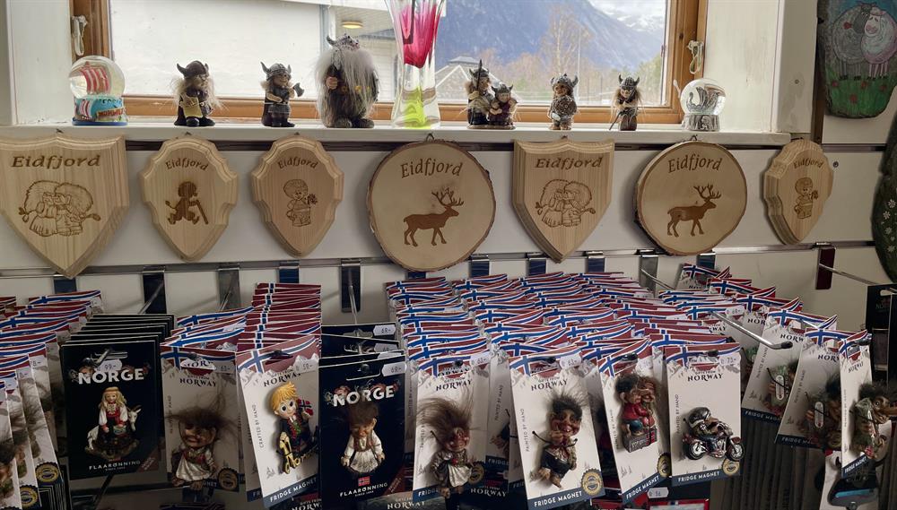 I tillegg fører me lokalprodusert honning, syltetøy og sjokolade. Me lagar også våre eigne kjøleskapsmagneter, og har sjølvsagt eit utval av tradisjonelle suvenirar.