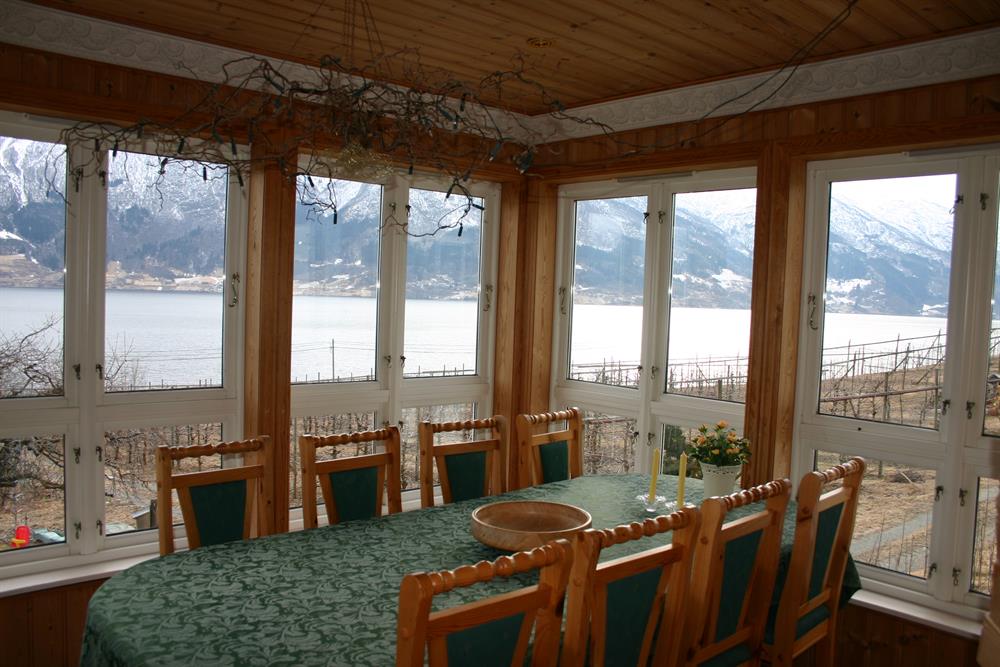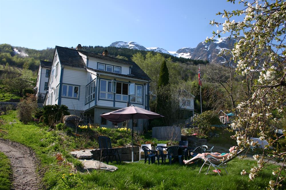 Hardanger harmony holiday house is a cosy house on Bleie farm, surrounded by orchards, gardens and a river. The house is spacious, 165 square meters, has 5 bedrooms with a total of 8 beds. The interior is a mixture of old style and modern comfort. Well equipped kitchen, dining room in a winter garden and to living rooms. One bathroom and two toilets. Outside there are two terraces and a veranda with morning sun and a playground. Beautiful view of the fjord. Pets are not allowed. No smoking.