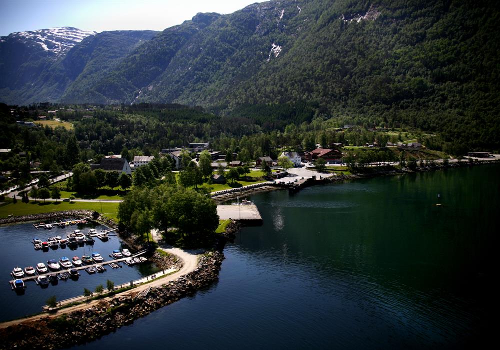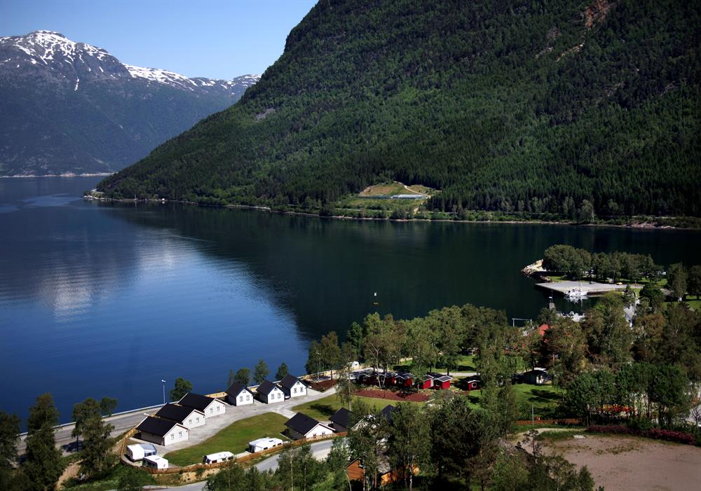 The campsite lies beside the Hardanger fjord.