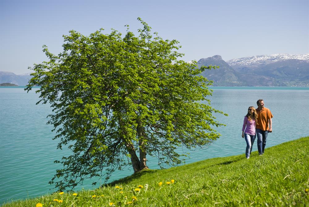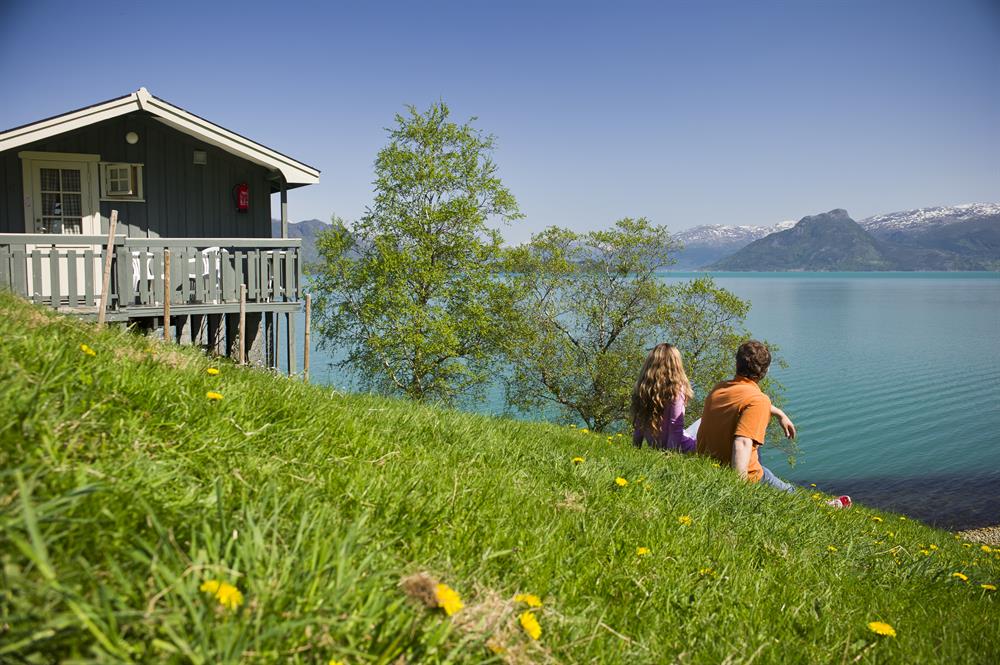 You’ll find us in an idyllic setting by Route 49, 4 km from Norheimsund and 80 km from Bergen. Friendly, family-run cabin village. Situated in peaceful surroundings with stunning views of the Hardanger Fjord. 50 m from the fjord and pebble beach. Patio by the water’s edge. Rowing boat for guests. Excellent opportunities for fishing and mountain hikes. You can also visit the museum and pottery workshop near by.