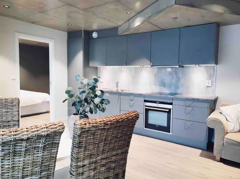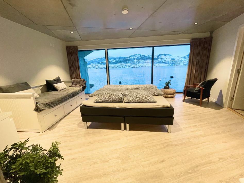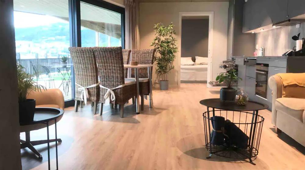 This apartment of 90 square feet has 2 bedrooms, free private parking and free Wifi. The kitchen is fully equipped, the bathroom has wahsing machine, hairdryer and towels. The view from the terrace is amazing, the apartment is situated by the fjord and you can see the Folgefonna glacier.