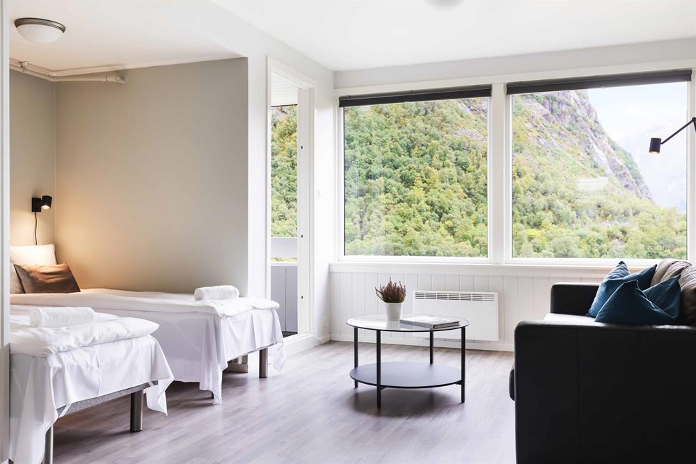 Trolltunga Aparthotel is a charming apartment hotel in Tyssedal - surrounded by sheer mountainsides and views of the Hardangerfjord.