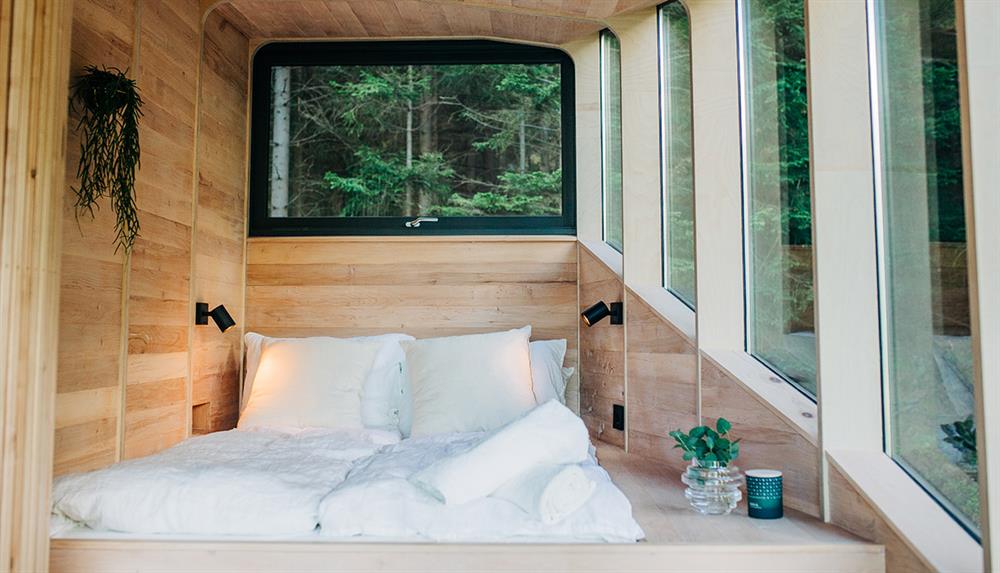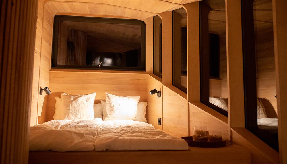 Get close to nature, feel the tranquility, and enjoy the view of Sørfjorden from Woodnest. The exceptional treetop cabins in Odda are indeed something else. The four huts, which all are 15 m², contain toilets and four beds. The two newest huts also include a bath tub and a double bed that lowers from the ceiling!