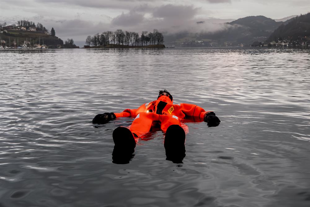 njoy one of the calmest winter experiences in Norway as you float on the still waters of Norheimsund Bay — only 80–90 min from Bergen. This location offers a slightly more urban-style fjord experience, with the village waterfront and marina close by. Here, you can walk straight to the shoreline and literally step into the Hardangerfjord before drifting weightlessly in a warm immersion suit for 25–30 minutes. Our local guide stays close throughout the session.
