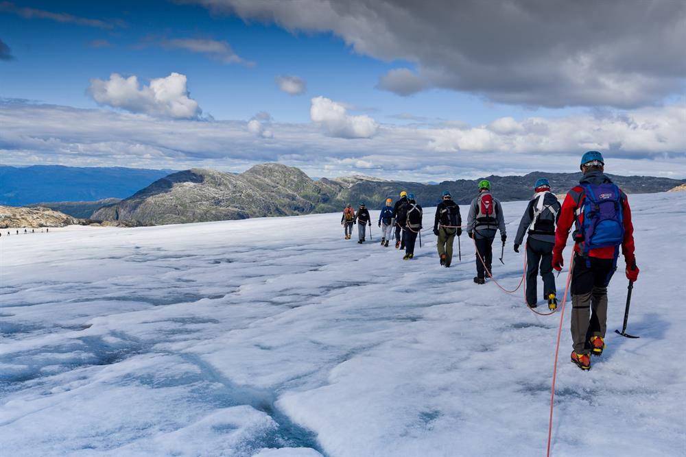 Folgefonna National Park was established in 2005 and is one of 42 National Parks in Norway. The Folgefonna glacier is the glacier furthest south in Norway, and the third largest. In the National Park and its surrounding areas there is a wide range of outdoor adventure activities available. You can join Folgefonni Glacier Team on guided snowshoe hikes, guided blue ice hikes, ice climbing or cross country skiing across the glacier (overnight stay on the glacier) from May www.folgefonni-breforarlag.no . The summer ski centre FONNA Glacier Ski Resort offers alpine skiing, snowboard and cross country skiing www.visitfonna.no . Hardanger Breføring offers guided glacier tours at the Buer glacier, a part of the Folgefonna glacier stretching towards lake Sandvinsvatnet in Odda https://www.buarbreen.no/. The Norwegian Trekking Association (DNT) has 4 mountain cabins in the National Park; Fonnabu, Holmaskjer, Breidablikk and Sauarbrehytta. The municipalities of Ullensvang, Kvinnherad and Etne all have a part of the Folgefonna National Park.