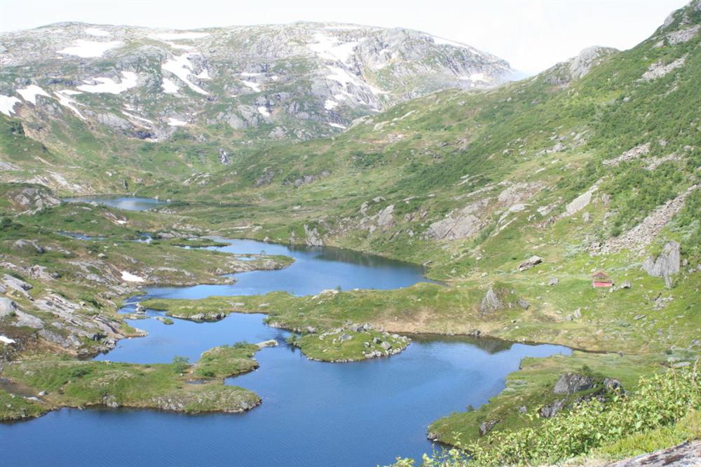 On an easy mountain path you pass the valley, Hestadalen and turn westward over Svartevassleite. Look for the hiking sign at the small lake, Svartevasstjørna. A good trail skirts around the north side of the large lake, Svartevatnet and brings you to the mountain cabins at Osadal. Following the trail you will find the hiking sign. After crossing the bridge the rest of the hike continues on the south side of the watercourse, towards Gamle Osadal, around Osadalsvatnet and along Langevatnet. In order to get to the next lake you leave Langevatnet at the hiking sign for Klippe. The path goes up to Klippe and then sharply down to Grytingsvatnet and then along the lake until you meet a path junction and a hiking sign showing routes to Flatabøgryting and Breidsete. (The mountain cabins at Flatabøgryting can be seen on the opposite side of the lake.) Follow the sign marking the route to Breidsete. The path goes steeply down to the small lakes, Jondalstjørnane, after which it takes you (steep again) down beside the waterfall. The last part of the hike follows the river and is a bit marshy in places until it arrives at the mountain cabins at Breidsete, where you can find an information board with details of the hikes in the area. There are enjoyable fishing possibilities in the many lakes you pass on this hike.