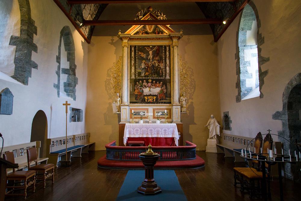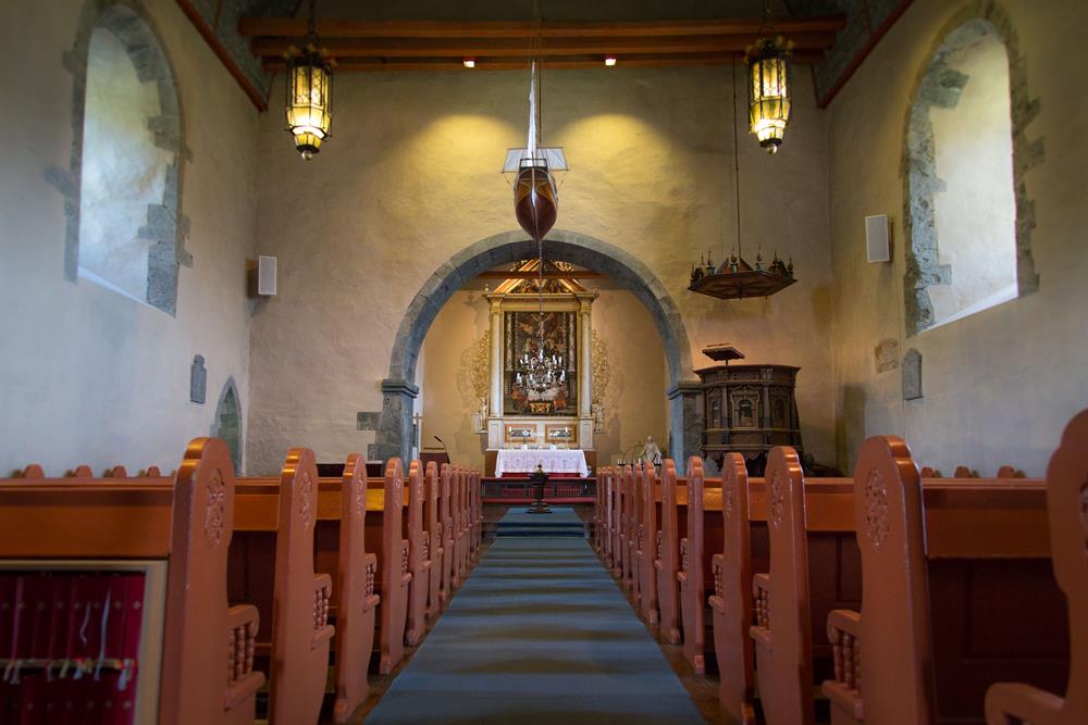 Kvinnherad Church, also known as the Kvinnherad Cathedral, is by many regarded as one of the most beautiful medieval churches in Norway. The stone church, which was built around the year 1250, and has been one of four main churches in Hordaland. This shows that Rosendal has been a vital hub for Christianity in the region. The stone altar has cavities with room for relics, one of several Catholic memories. From the year 1678 - 1910, the church was owned by Baroniet Rosendal, who was responsible for renovation and decoration during this period. The ceiling is covered with stars and other celestial items to give the church a sense of sitting under the sky of God.
