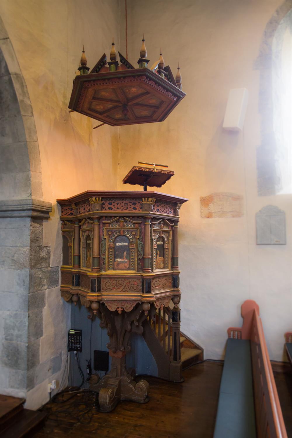 Around the year 1670, the tomb of the Rosenkrantz family was built, and it is still intact with a beautiful sarcophagus. The altarpiece was painted by Hans Sager in 1705 on behalf of Baron Aksel Rosenkrantz and shows the Lord's communion, the Crucifixion, and the Revival. The church is open during high season for individuals or for groups by appointment.