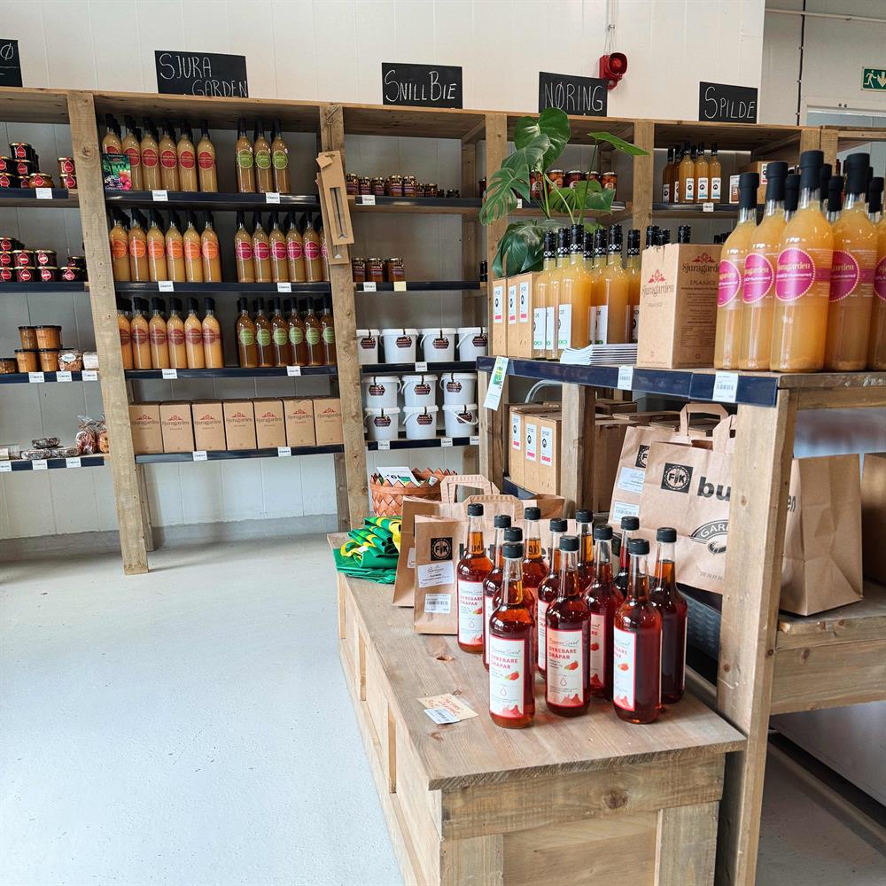 In the farm shop in the center of Øystese, you can buy locally produced specialties and delicacies from other Norwegian small and medium-sized producers. Here you will find traditional bakery products, juices, Hardanger cider, jams, honey, and meat products.