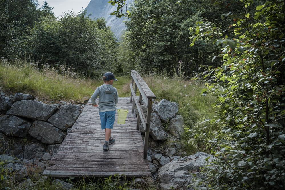 This is an easy hike through an impressive valley. In the beginning, it follows the path along the river, then it continues on a small paved road, followed by a gravel road. There is very little traffic on the road. In the spring, the Skytjefossen waterfall can be a magnificent sight! You may take a shorter walk on the road – even a 1 hour walk will be pleasant