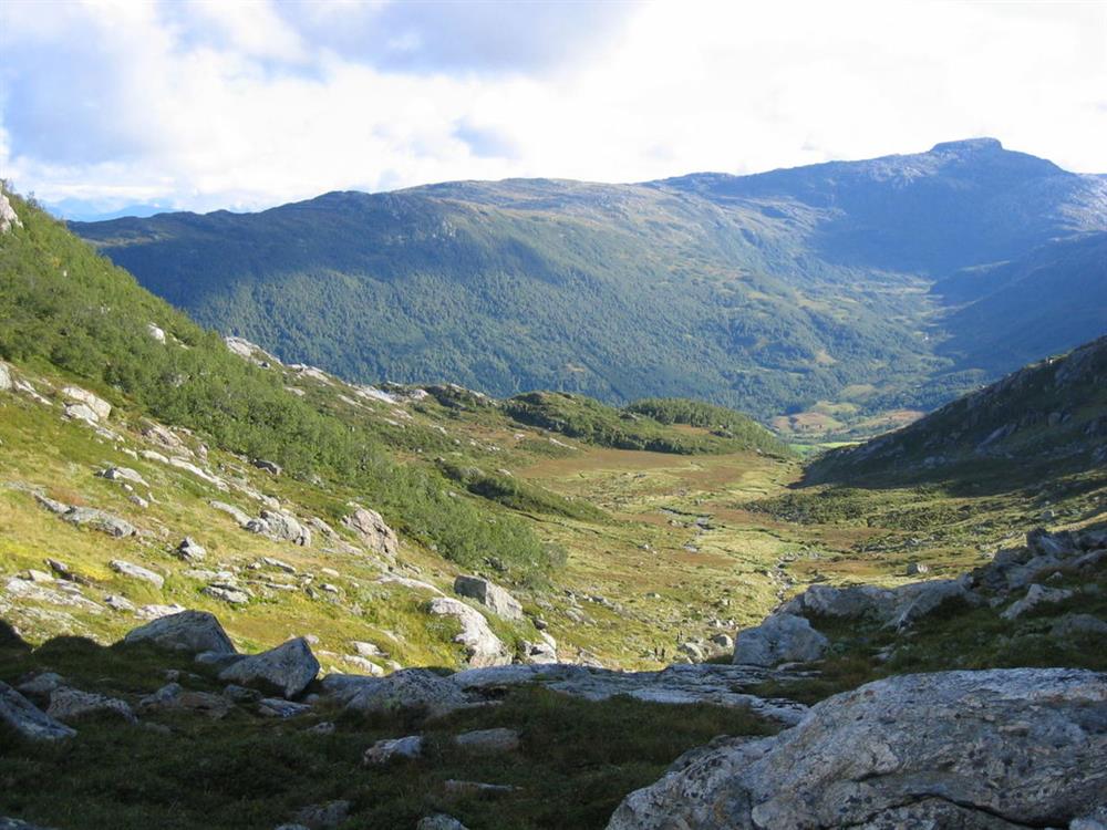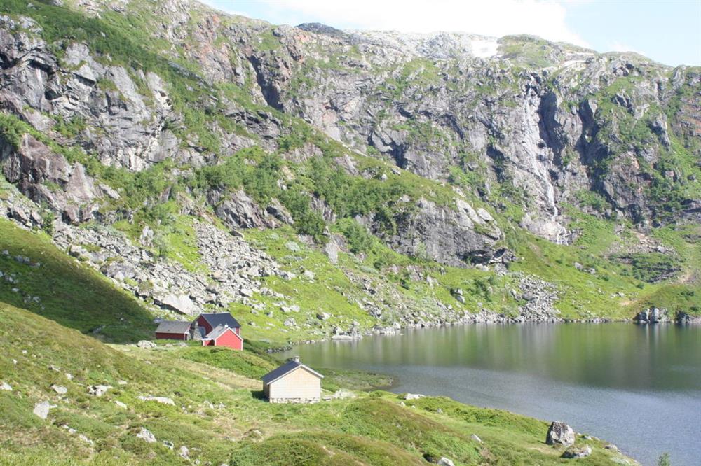 The hiking sign marking the route to Flatabøgryting is close to the club house. The first 0.5 km follows the lighted ski track. The route moves away from the ski arena at a new hiking marker and crosses a marshy woodland area. The path moves uphill, and then across the river, Gjetingselva (by hopping stones). The hike is now on a steep but good trail through the woods and up to the tree line. Above the treeline and over the shoulder you reach a good mountain terrain in the open valley at Kvålsbotn. Continue up the hill at the end of the valley and past the little lake, Skardtjørna. At the highest point of the trail you can view the lake, Grytingsvatnet and the mountain cabins of Flatabøgryting. The hike is marked following the west side of Grytingsvatnet until it arrives to a connecting point with other hikes.