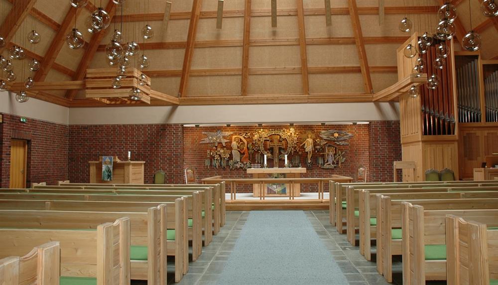 Here we have a church hall for large gatherings, smaller meetingroom with a cozy fireplace for different groups and an office space for official duties, etc.