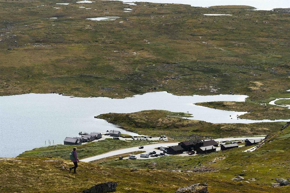 You'll get a view of the three national parks: the mountain formation Hallingskarvet, the glacier Hardangerjøkulen and the vast Hardangervidda mountain plateau. A short hike with a real feeling of being in the mountains, and a wonderful break from the car drive.