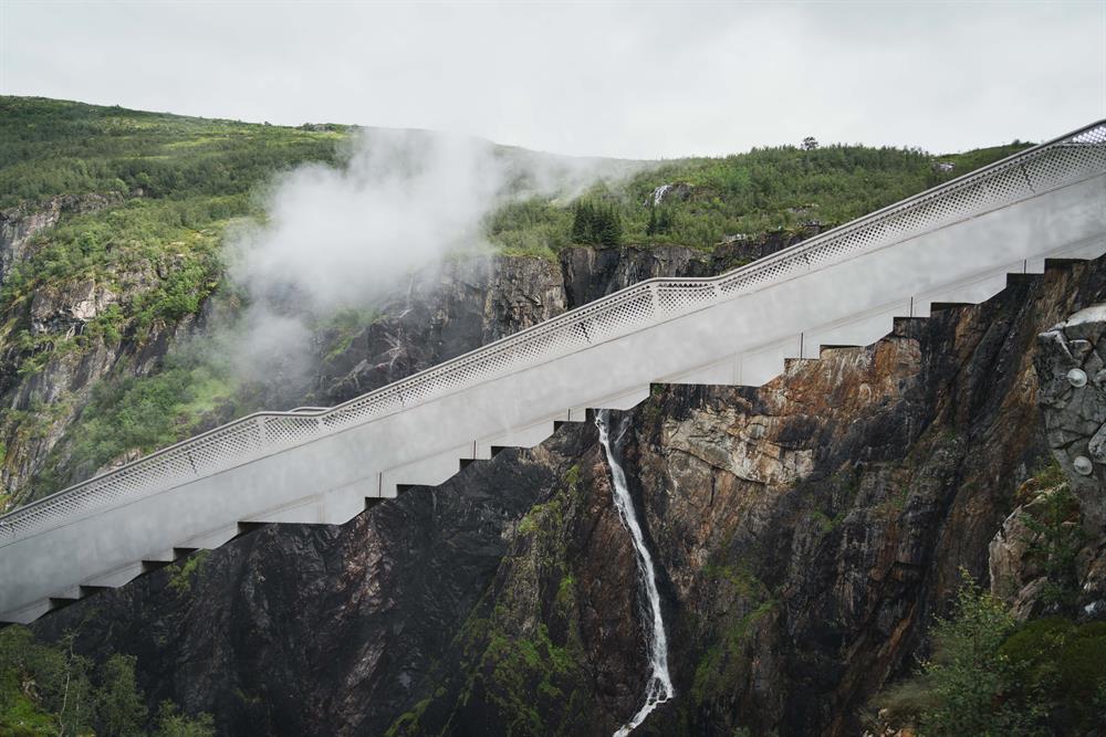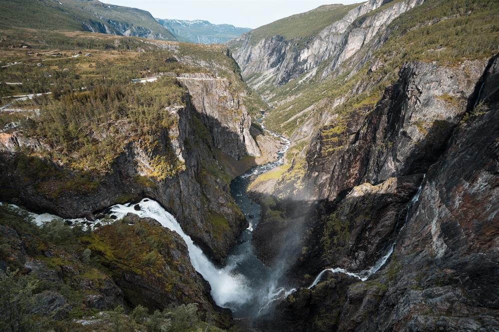Hop on a bus that will take you to the famous Vøringsfossen waterfall, which is one of Norway's best known waterfalls. There you'll witness a mesmerizing spectacle as vast quantities of water plunge an astonishing 182 meters from the Hardangervidda plateau into the Måbødalen valley. There are several spectacular viewing platforms near the waterfall and a newly constructed step bridge, where you can take a walk to marvel at the Vøringsfossen waterfall from different angles. As you approach the viewing platforms, you'll be greeted by the thunderous roar of the waterfall and the awe-inspiring beauty of nature's force. The strategic positioning of the step bridge allows for a unique perspective, allowing you to feel the power of the waterfall beneath your feet.