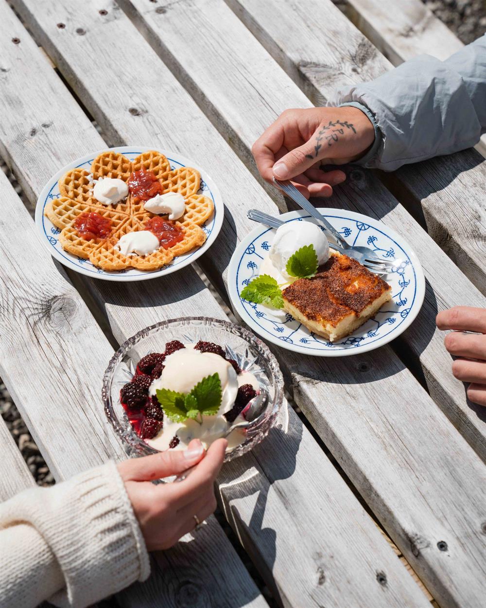 We can offer events of all kinds. Local food, local traditions between fjord, mountains, and glacier. Do you like beautiful and natural surroundings for weddings, confirmations, baptisms, anniversaries, or Christmas parties? Then we can assist you! Additionally, we welcome groups for lunch, dinner, or coffee/cake by reservation, whether it's students on a school trip, sightseeing groups from cruise ships, or buses. Olaløo is also well-suited for courses and conferences; feel free to invite colleagues to a seminar with a good meal on the side. In spring and autumn, the café is open every Sunday. During the busy tourist season from the end of June to the beginning of August, the café is open every day.