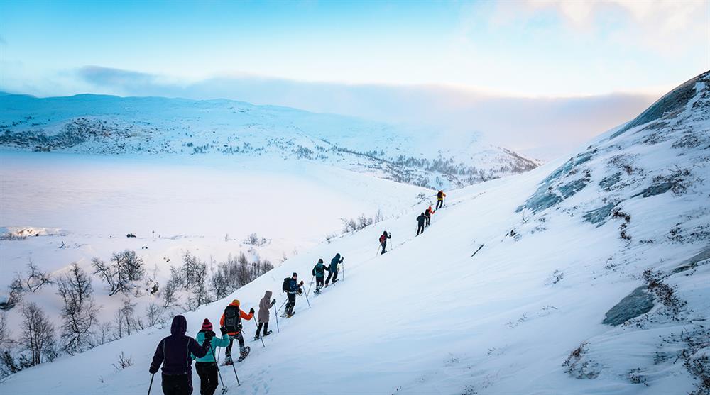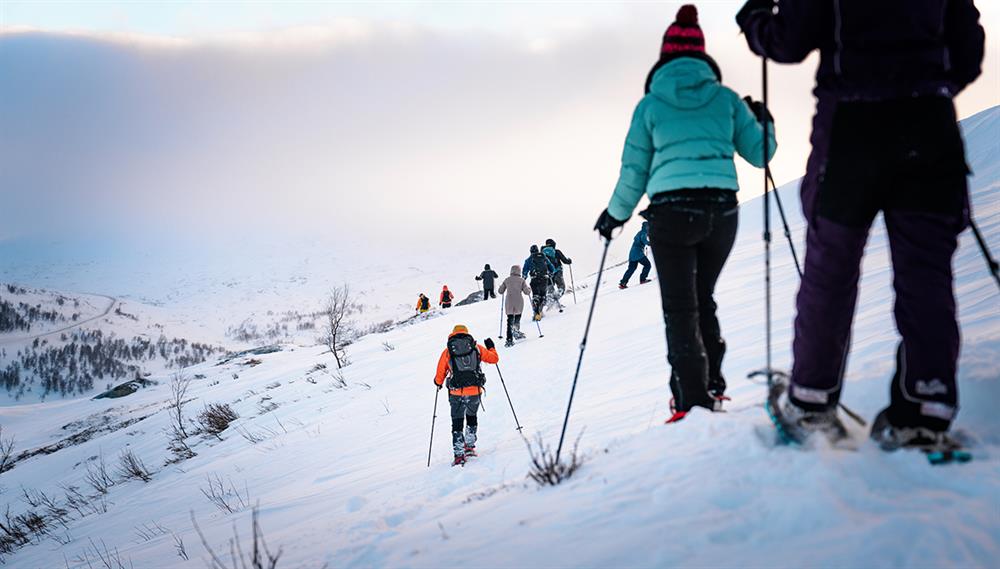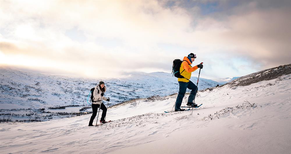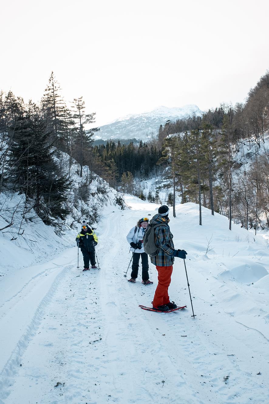 Join us for an adventure that takes you deep into the snowy forest or to scenic viewpoints offering breathtaking panoramas of fjords and mountains. Snowshoeing is an easy and accessible activity, perfect for everyone – whether you're an experienced outdoor enthusiast or trying it for the first time. With snowshoes, you can glide effortlessly across deep snow or gain solid traction on icy or compact surfaces.