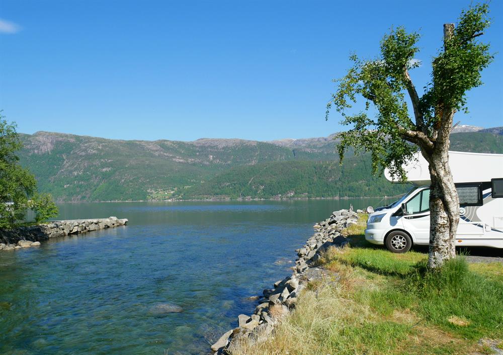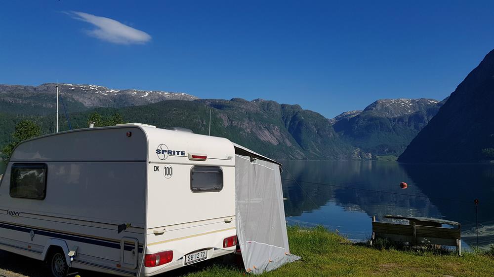 Sundal Camping is situated in the beautiful Maurangerfjord, a part of the Hardangerfjord. The campsite is located on the shore of the fjord in Sunndal with views towards the Bondhus glacier, the Bondhus valley and the fjord. Cabins are available in different sizes, from 20 square meters to 64 square meters. There are 60 lots available for campervans, caravans and tents. There is also a guest harbour. From 2018 there is a separate parking place by the fjord near the camp site for campervans. On the camp site there are 3 sanitation facilities, kiosk, common rooms, barbeque area, playground and a bathing place.