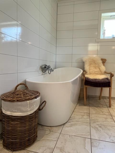 The main house includes a cozy living room, a dining room, a large and well-equipped kitchen, two modern bathrooms, and six bedrooms. Both bathrooms feature bathtubs and showers, offering a touch of luxury. The kitchen is equipped with everything you need for self-catering, making it easy to prepare meals during your stay.