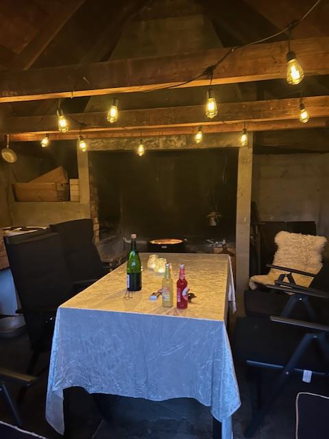 The outdoor space is large and versatile, featuring a long table that seats ten guests. Additional amenities include a barbecue, shuffleboard, small football goals, a dartboard, and opportunities for various outdoor activities. It’s the perfect setting for both relaxation and fun!