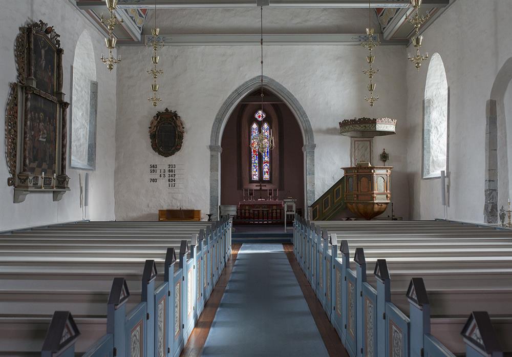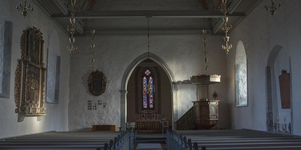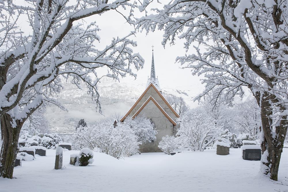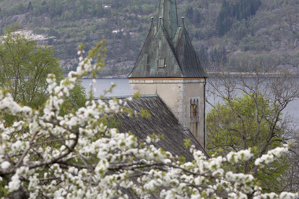 The stone church in Lofthus was probably built between 1250 and 1300. It is an example of Gothic architecture with pointed arches. Legend says that the masterbulders were English or Scottish. Between 1884 and 1886 the church was renovated and the tower was added. The inventory date from different epochs and the bells are from the middle ages. The view to Folgefonna glacier is beautiful from the church. Church Services.