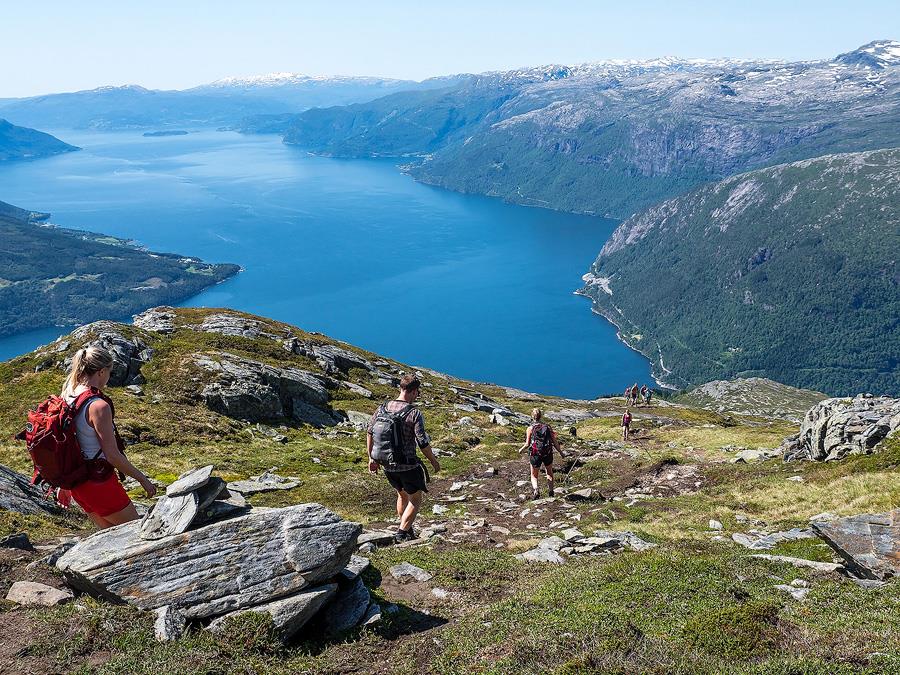 Variation: Take a different trail down, to for example Djønno, or Selstad at Granvinsfjorden, or Stokksel in Granvin. These trails are unmarked and difficult to find, so a map is necessary.