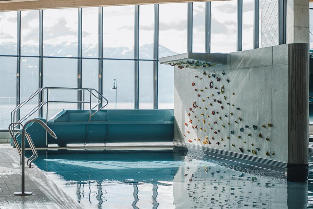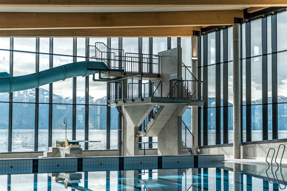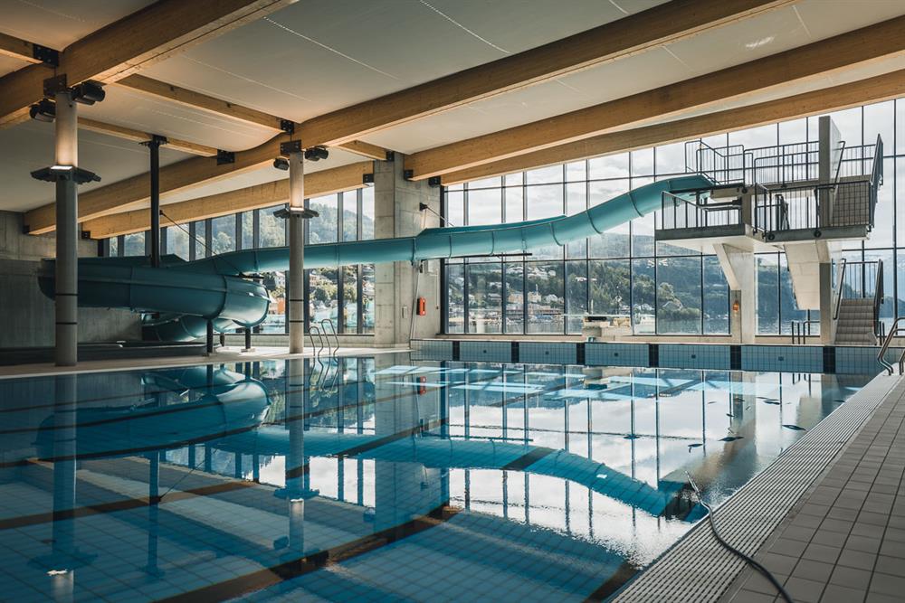 Nede ved fjorden i Øystese sentrum, finn du det nye Hardangerbadet. Fyrtårnsprosjektet som akkurat opna dørene, inneheld bade- og symjeanlegg, helsepark, treningsanlegg og visningssenter for laks. Symjeanlegget, med 25 metersbasseng, samt familie- og terapibasseng, er kjerna i Hardangerbadet.
