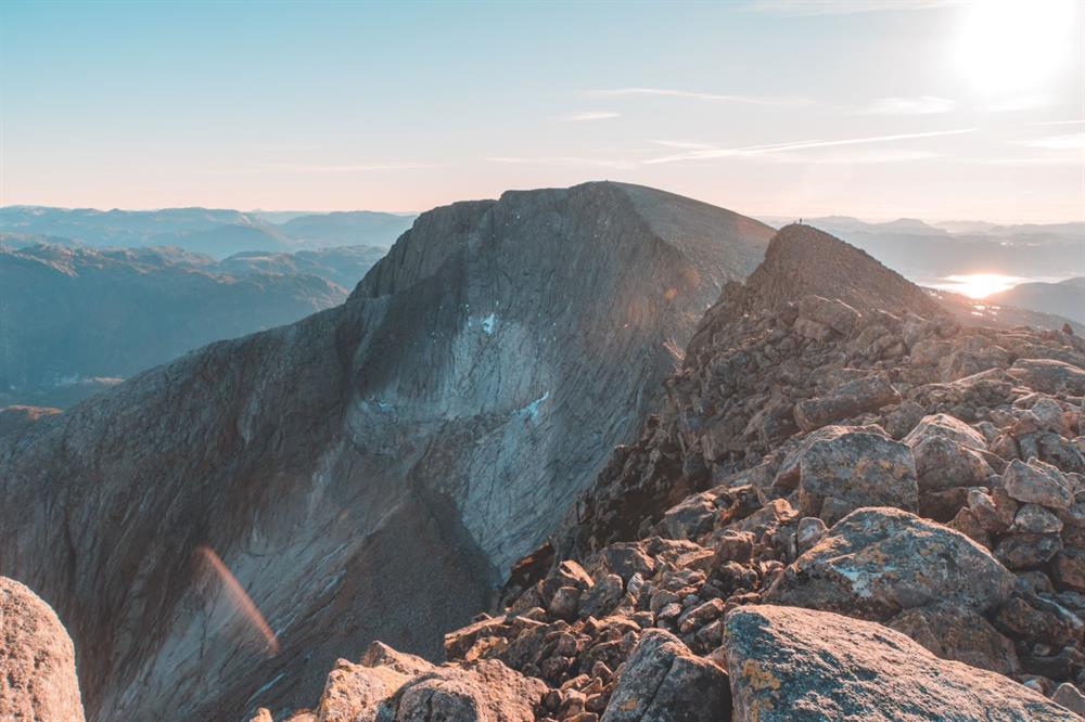 Alternative returar: Frå Høgetinden kan ein følgja merkt rute ned til Uskedalen direkte, eller over Geitadalstinden.