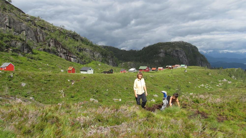 I Gangdal, gå gardsvegen opp i tunet. Rett ovanfor husa er det skilta, og stien følgjer dalen heilt opp til stølen Grønrimb. Først gjennom granskog, så litt furu- og bjørkeskog, før du etterkvart kjem over skoggrensa. God sti, men nokre våte og glatte parti langs bekken. Frå Grønrimb er det fire andre ruter ned att til hovudvegen. Det er også umerka sti austover mot Daurmålsdalen.