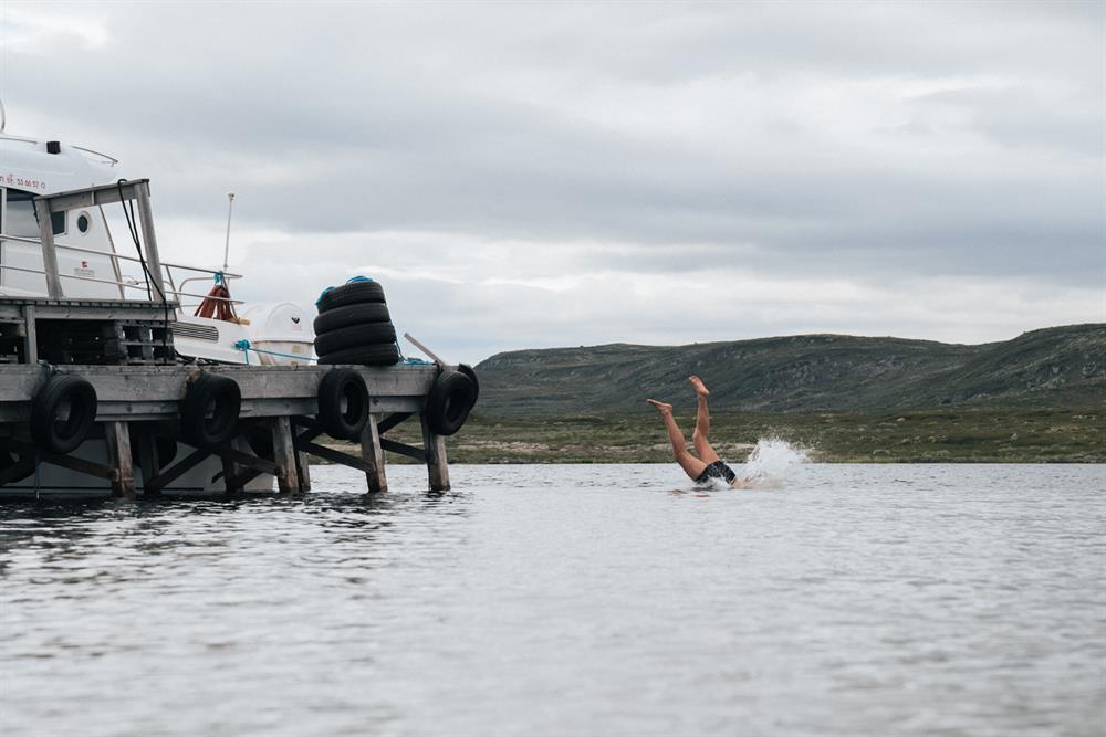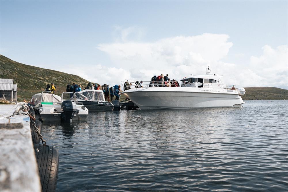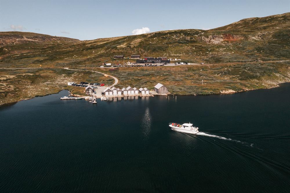 Kombiner fjellturen med båttur. Båten Halnekongen tilbyr skyss frå Halne Fjellstugu (lokalisert ved rv7) 13 km inn på Hardangervidda fjellplatå.