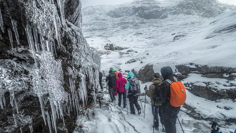 - Bruk ullundertøy som innerste lag, ein varm mellomlagsjakke, vind- og vanntett skalljakke og bukse (ikkje bruk bomull - det er iskaldt når det er vått)