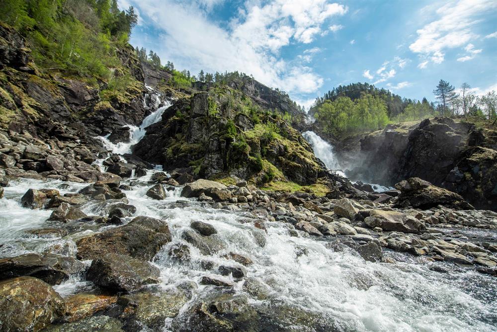 Låtefoss i Oddadalen har ei fallhøgde på 165 meter og har vore eit ynda reisemål heilt sida 1800-talet. Han er lett tilgjengeleg - rett ved hovudvegen 13 mellom Odda og Røldal.