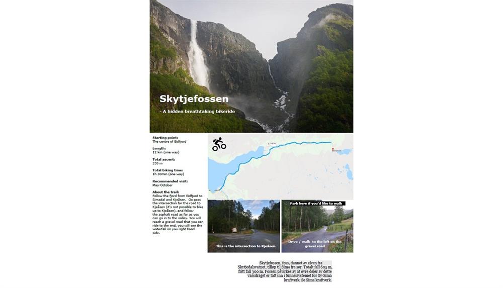 Skytjefossen har ein fallhøgde på 300 meter. Den er regulert, men kan i periodar ha god vannføring og er då eit fantastisk syn.