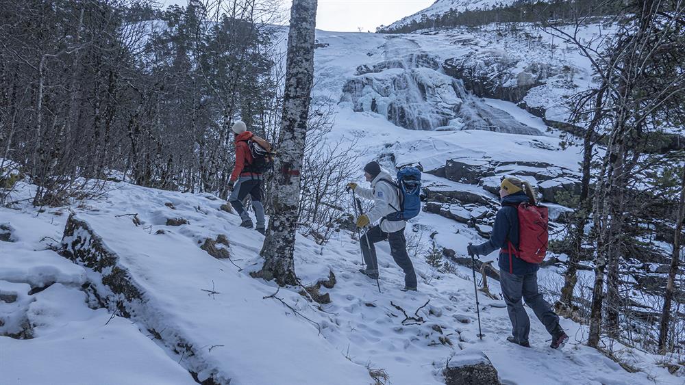 Kom tett på fire magiske fossar i Husedalen - også kjent som Fossanes dal - på ein guida vintertur med Trolltunga Active.