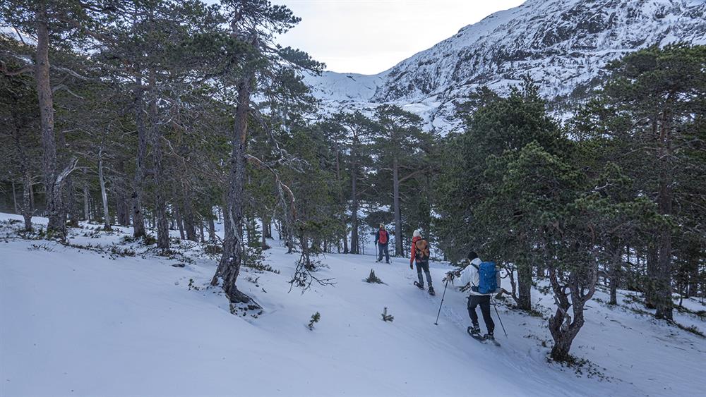 Avhengig av forholda, vil du på deler av turen, i nokre tilfelle heile turen, gå på truger.
